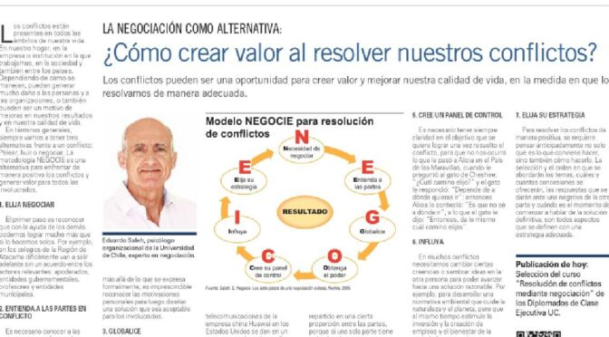 En la publicación de Clase Ejecutiva UC titulada “¿Cómo crear valor al resolver nuestros conflictos?”, el psicólogo organizacional Eduardo Saleh entrega herramientas para enfrentar los conflictos de forma positiva, transformándolos en una oportunidad de mejora y no en una amenaza. Este artículo forma parte de una serie de contenidos que buscan aportar conocimientos prácticos a los alumnos y profesionales interesados en desarrollar habilidades de negociación.